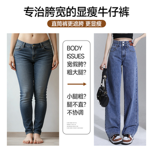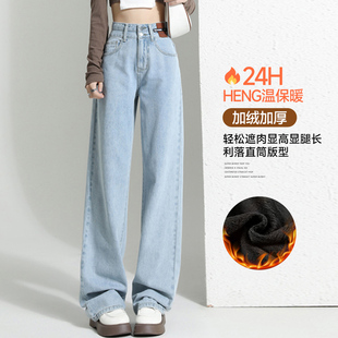 复古长裤 KPP真维斯牛仔裤 子加绒烟管直筒裤 休闲高腰裤 女士 女冬季