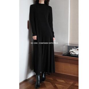 显瘦百搭半高领打底连衣裙 过膝修身 与她秋冬经典 极简约基础超长款