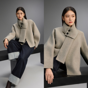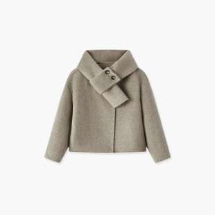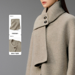 爱居兔抗静电双面呢大衣女冬季 软糯舒适带围巾大衣外套 新款