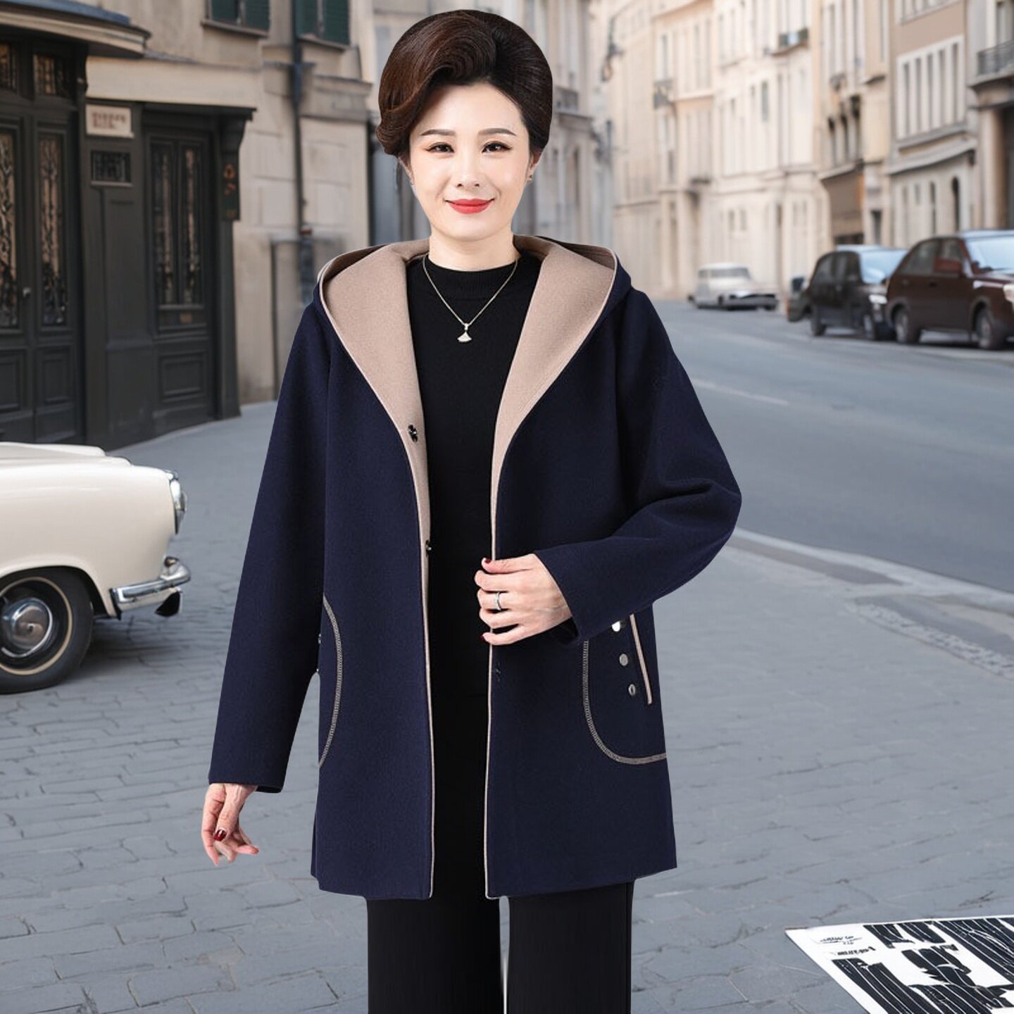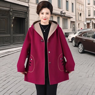 连帽 气质厚外套中老年女中长款 9XL胖妈妈洋气大衣加肥大码 秋冬季
