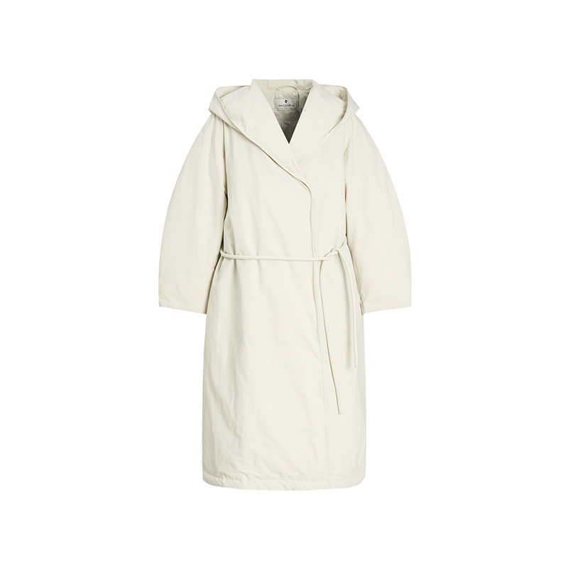 ZHUCHONGYUN冬季 配腰带羽绒服外套 珍稀白鹅绒连帽宽松长款