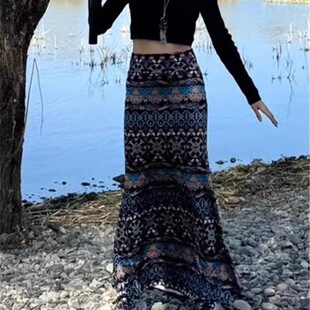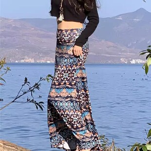 半身裙印花高腰鱼尾裙 纳波西米亚海边度假长裙修身 泰式 云南西双版