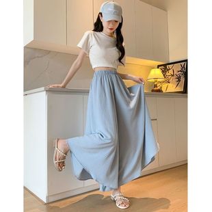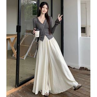 高腰宽松垂感褶皱小个子休闲阔腿裤 超仙白色裤 2025新款 薄款 裙夏季