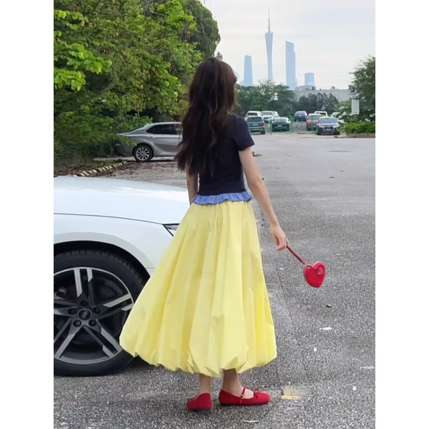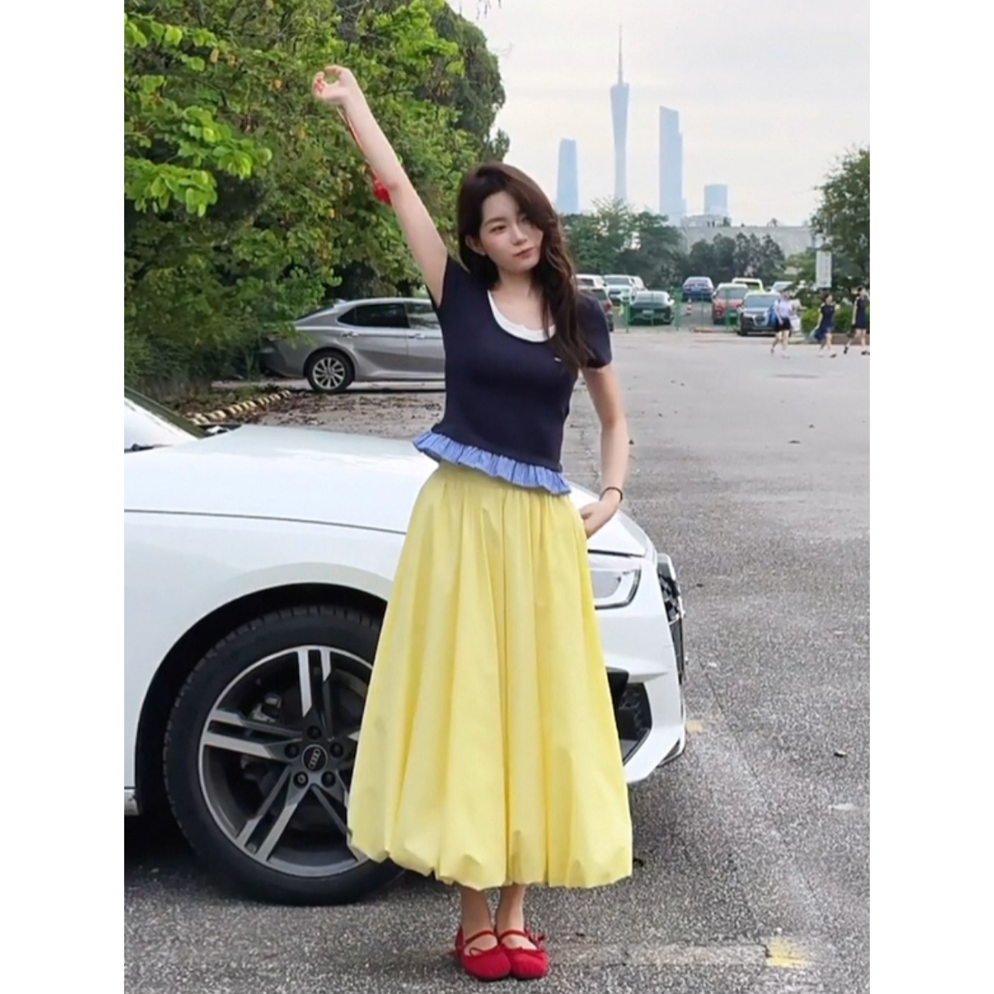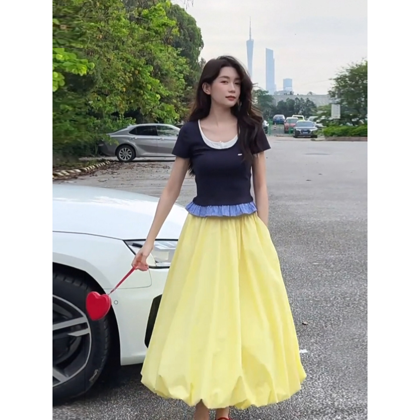 自制日系甜美奶油黄半身裙夏日学生温柔风超仙女空气感蓬蓬花苞裙