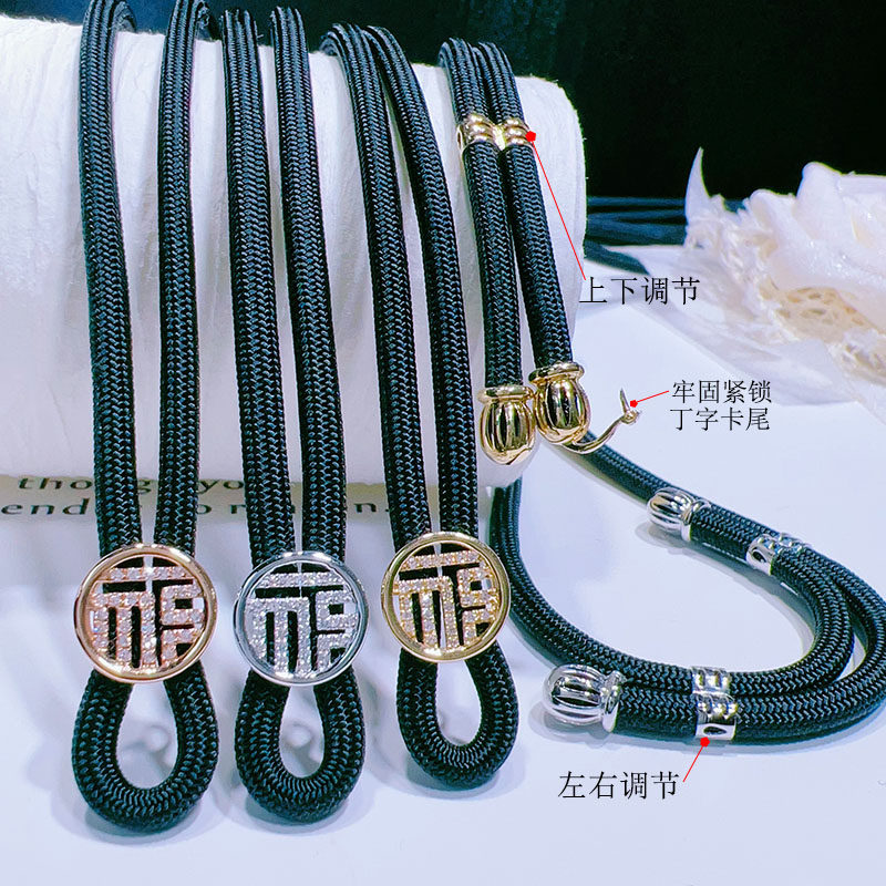 18k金高货绳镶嵌钻石翡翠吊坠挂绳多功能款 百搭项链抽拉调节配件