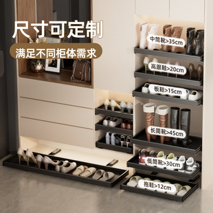架 子收纳反弹滑轨入户门口玄关抽拉鞋 踢脚抽屉鞋 柜底部托盘家用鞋