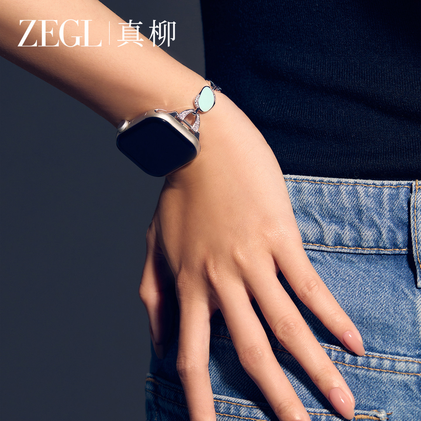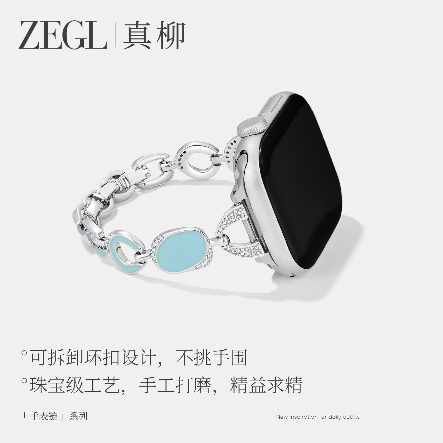 ZEGL设计师适用苹果iwatchS10智能手表带applewatch表带蓝色滴油手链女轻奢小众精致SE手表链腕带可调节