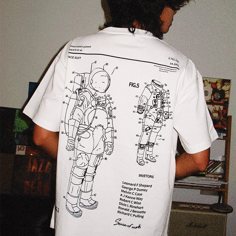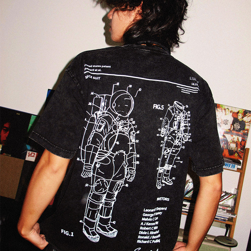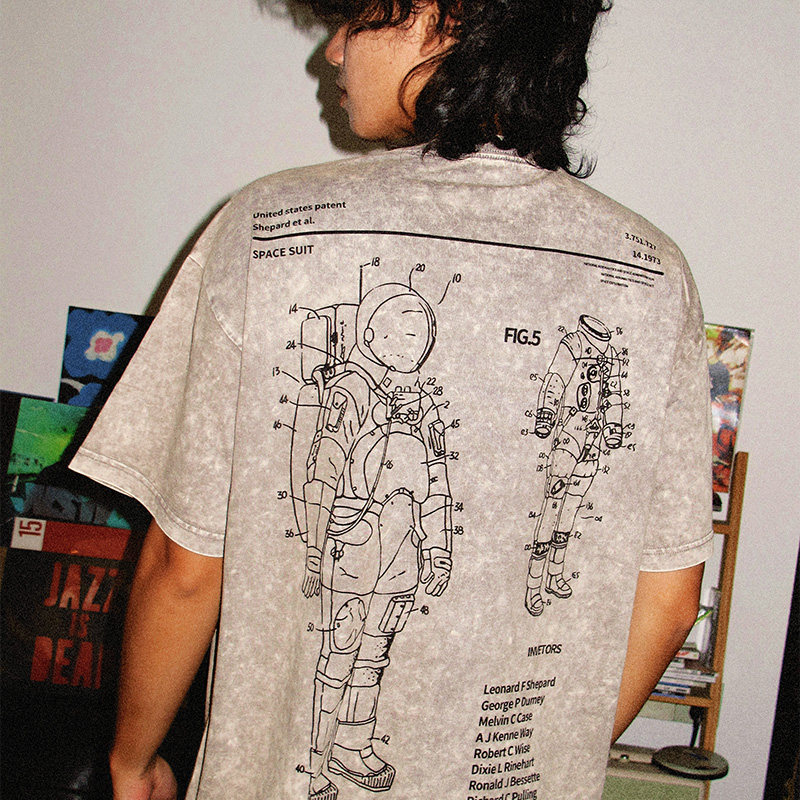 7AM T恤ins高街 NASA宇航服拆解图小众科普水洗做旧纯棉宽松短袖