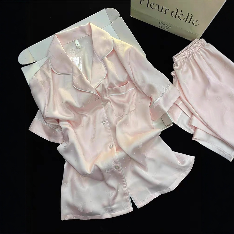 仿真丝绸套装 芝桃鸟睡衣情侣男士 家居服女2025新款 冰丝夏季 春秋款