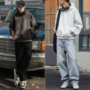 男道秋冬重磅模糊字母连帽加绒印花卫衣男士 宽松高街套头上衣 美式