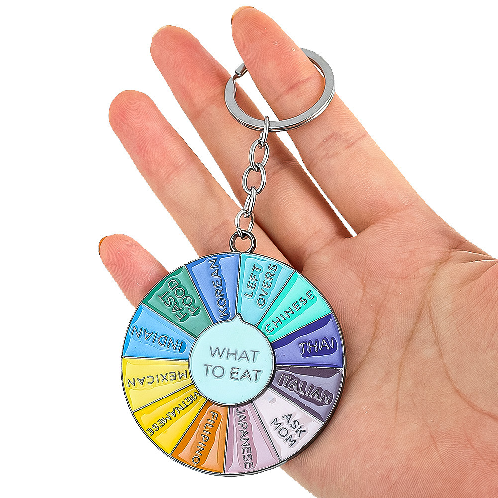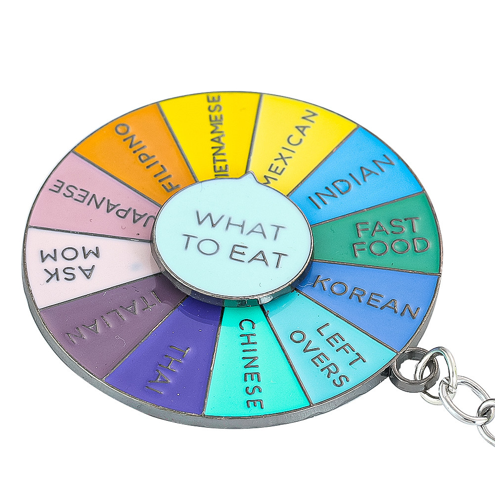 旋转吃什么英文彩虹转盘创意决策互动或否趣味钥匙扣礼品徽章
