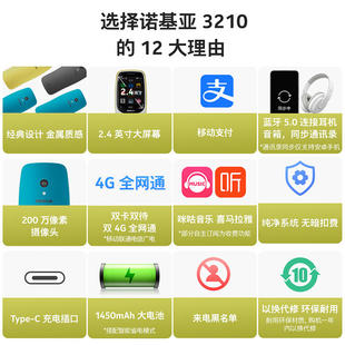 4G移动联通电信广电全网通老人学生戒网手机 3210 Nokia 诺基亚