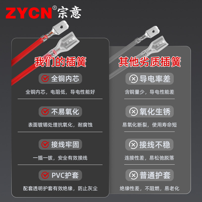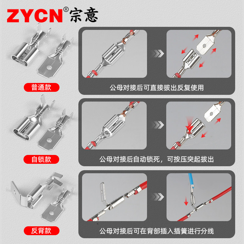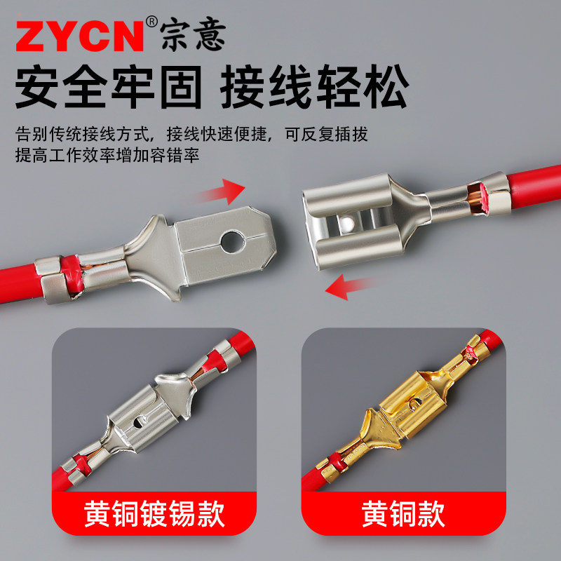 自锁电瓶母头接插件 2.8插拔式 插簧端子带锁冷压接线端子6.3 4.8