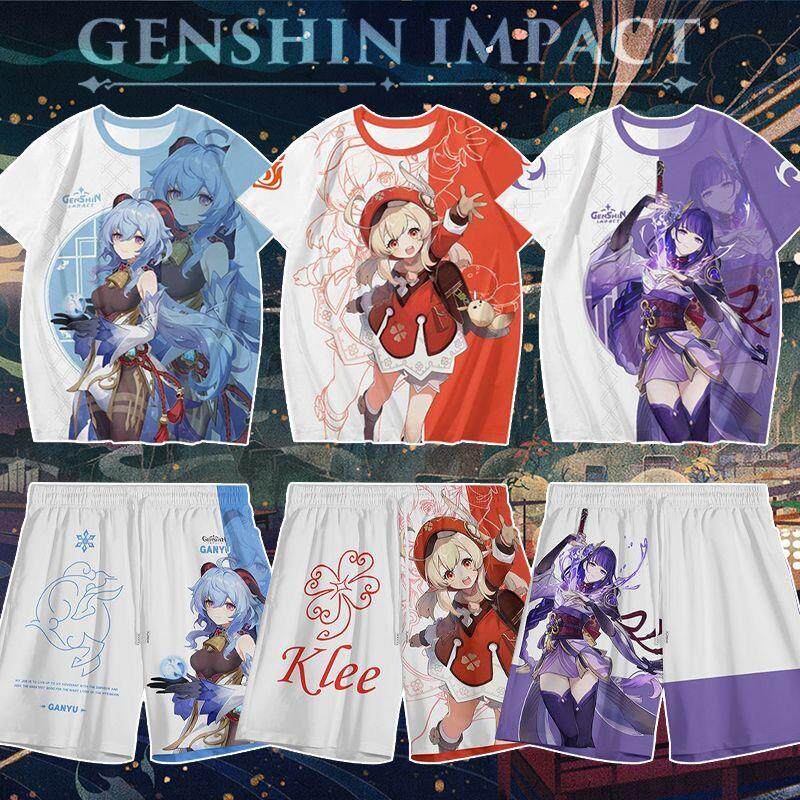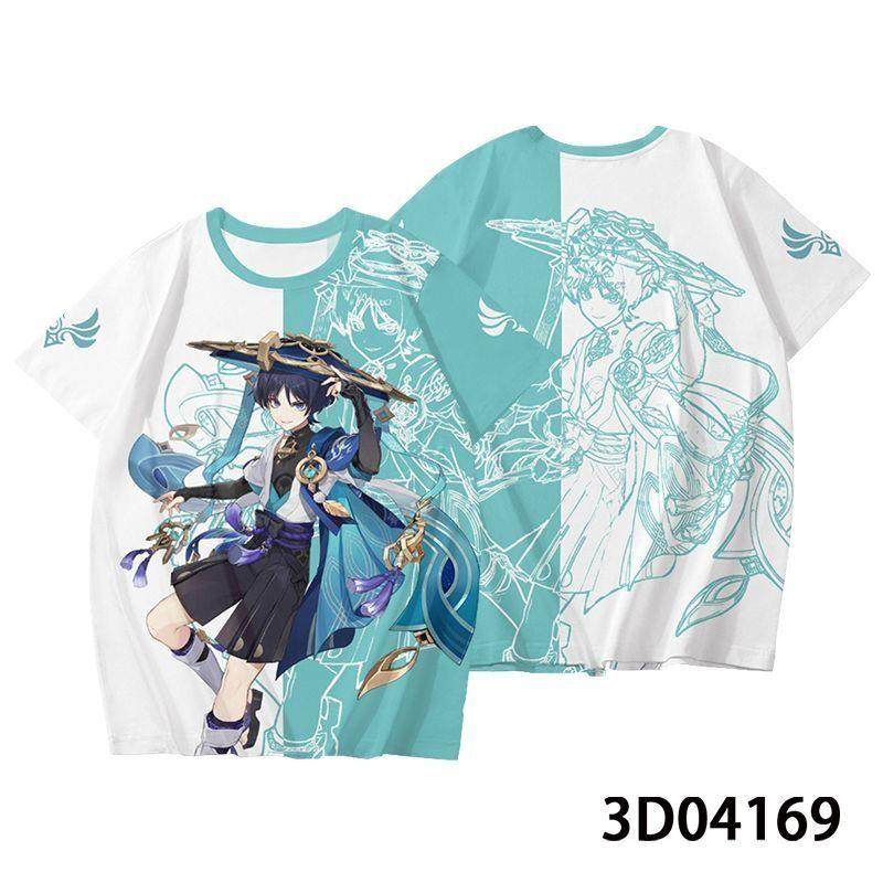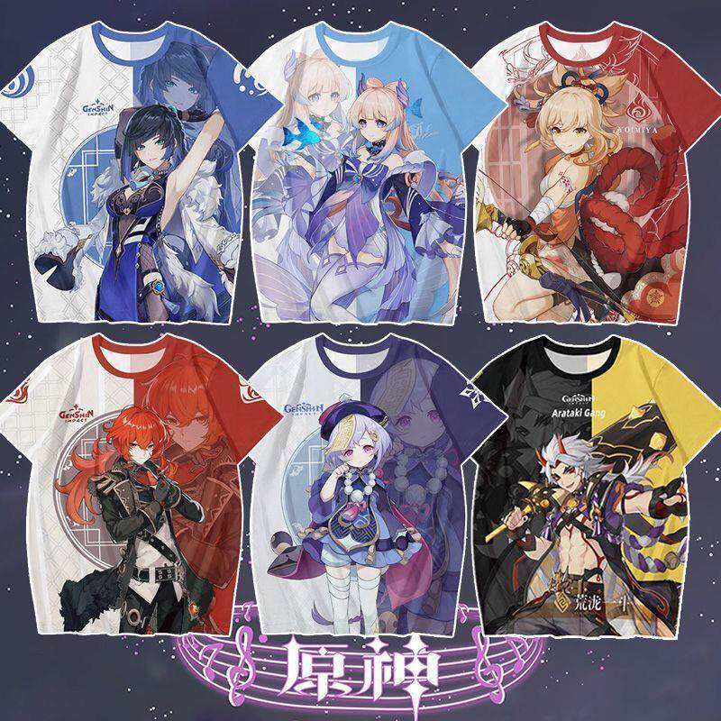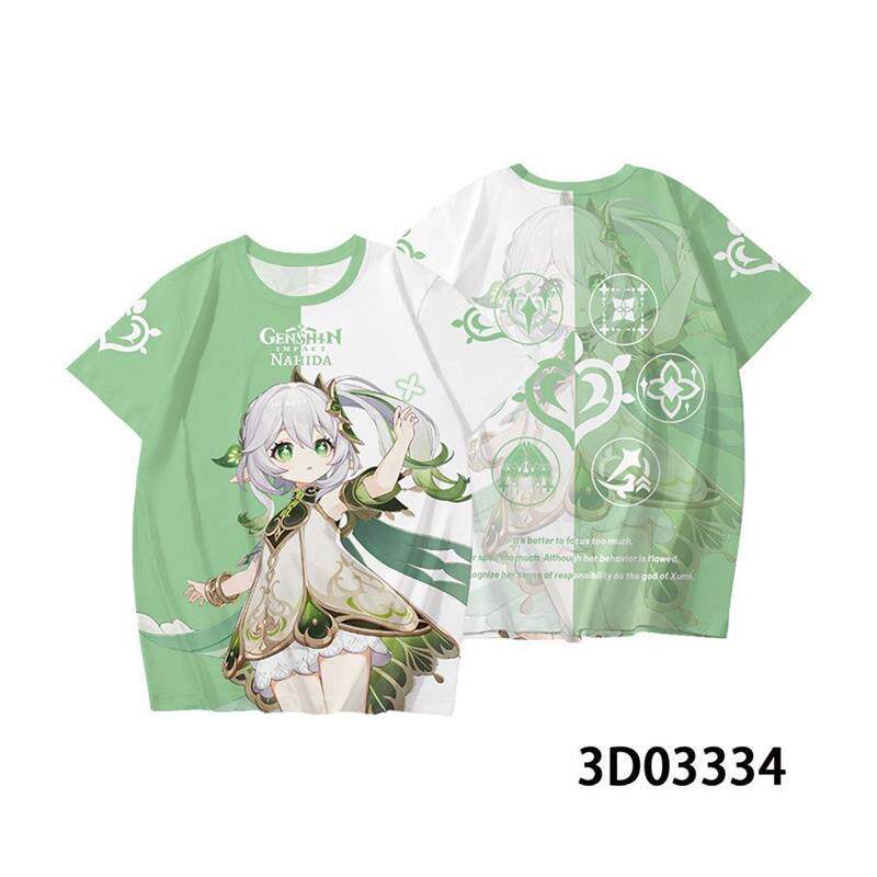 原神3D印花短袖 T恤痛衣纳西妲钟离胡桃可莉雷电将军绫华动漫周边