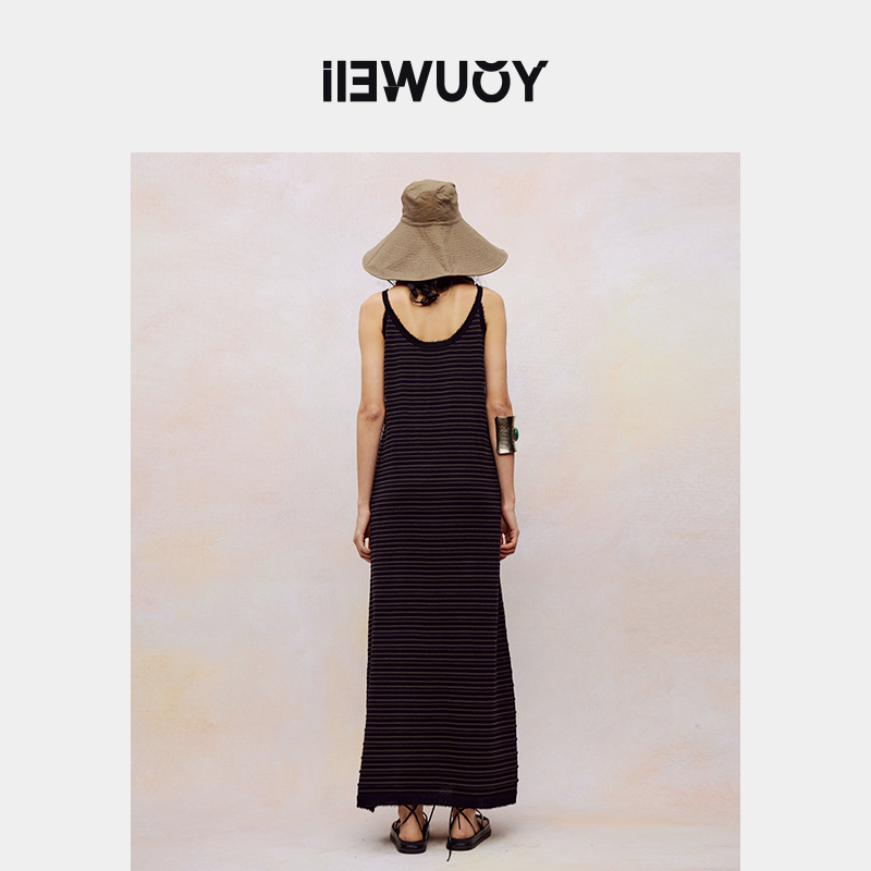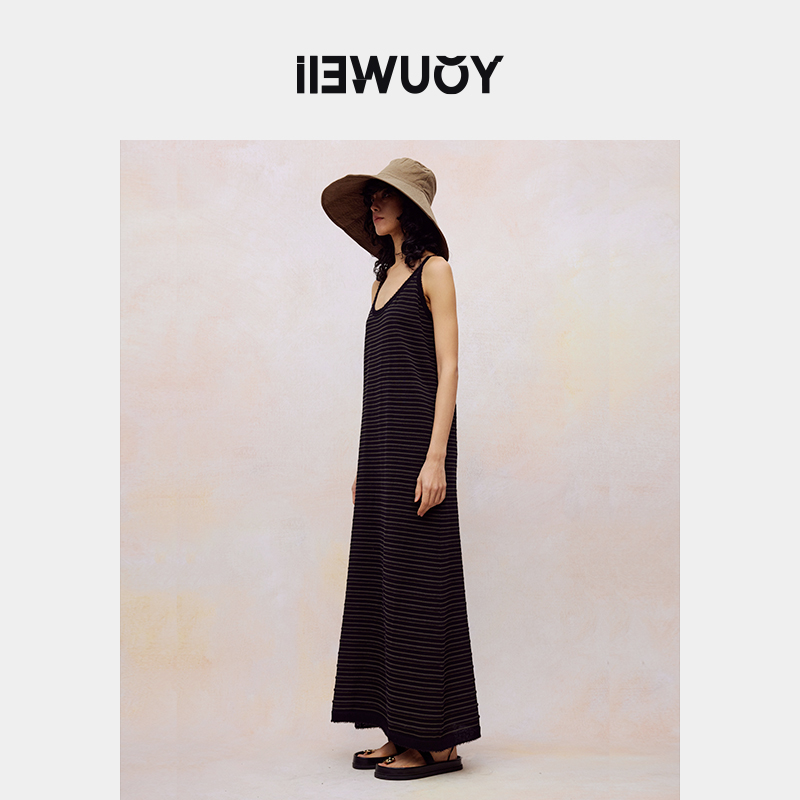 YOUWEI有尾夏季 肌理条纹吊带裙女夏连衣裙Y5724201 法式