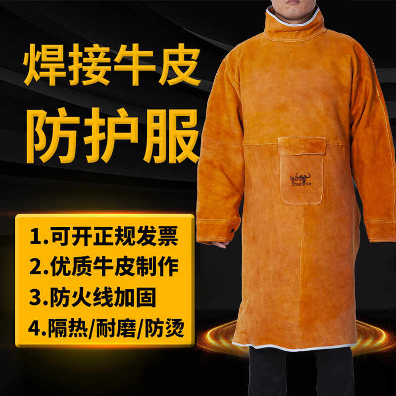 隔热焊接氩弧焊阻燃反穿衣防火线纯皮焊工防护围裙防烫电焊工作服