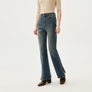 男美式 子弯刀裤 高街vibe窄版 显瘦裤 直筒修身 水泥烟灰色微喇牛仔裤