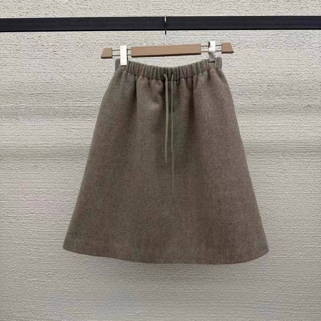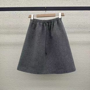 韩国东大门2025秋冬新款 抽绳松紧腰毛呢半身裙女高腰显瘦A字短裙