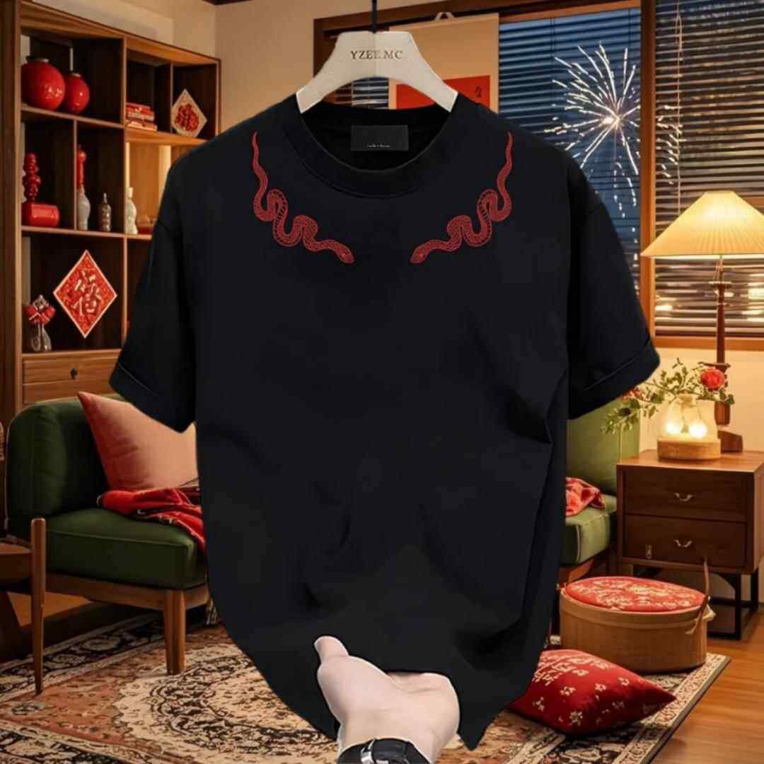 新款 夏季 潮流创意图案宽松百搭上衣体恤 T恤男士 国潮重磅纯棉短袖