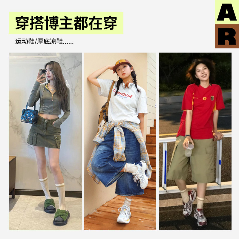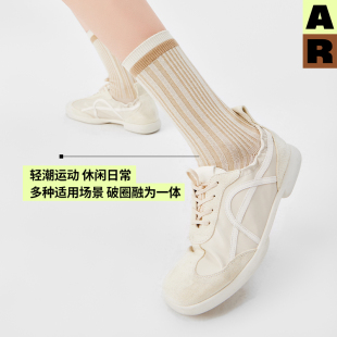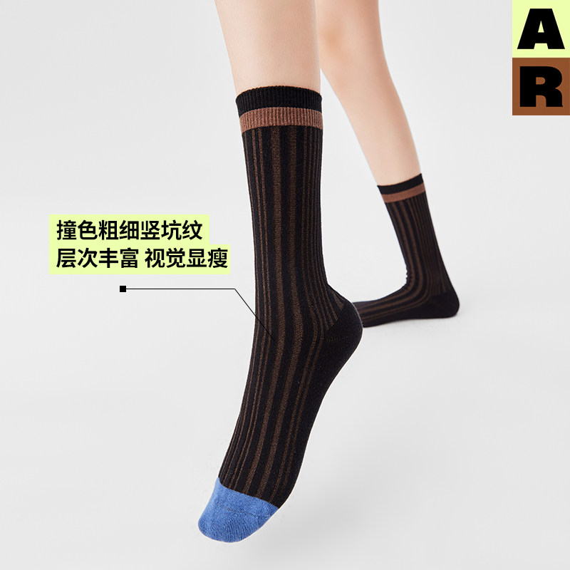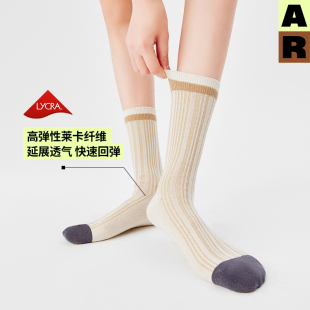 AR袜子女秋冬季 撞色坑纹条纹中筒袜轻运动袜无骨袜早秋百搭情侣袜
