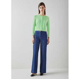 长袖 女春夏新款 薄外搭 针织开衫 lkbennett薄荷绿色纯棉短款