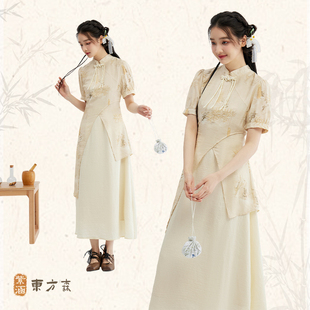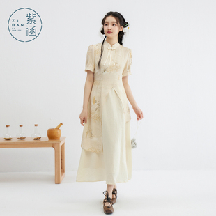 新款 连衣裙女夏季 轻国风禅意设计感收腰中长裙 立领短袖 紫涵新中式