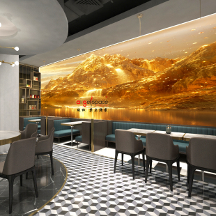FJ6688背靠金山办公室挂画聚宝盆山水客厅元 宝沙发背景墙财壁画