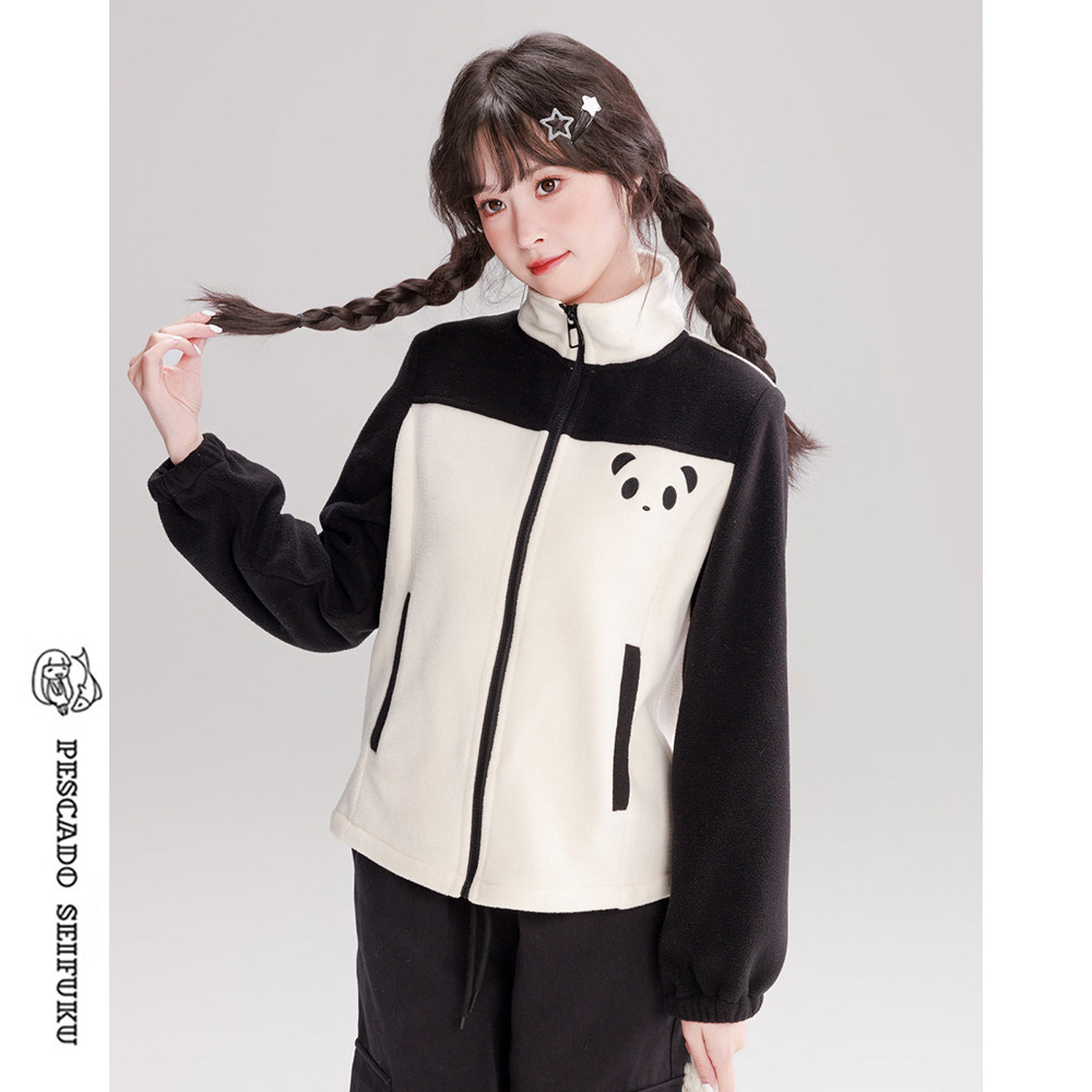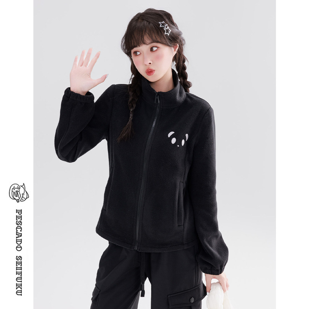 咸鱼衣橱 甜美小个子百搭上衣 熊猫冲锋衣内胆摇粒绒外套女春秋季