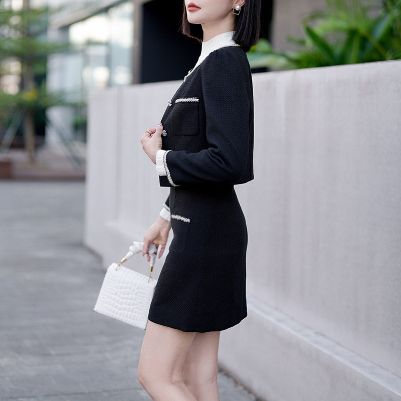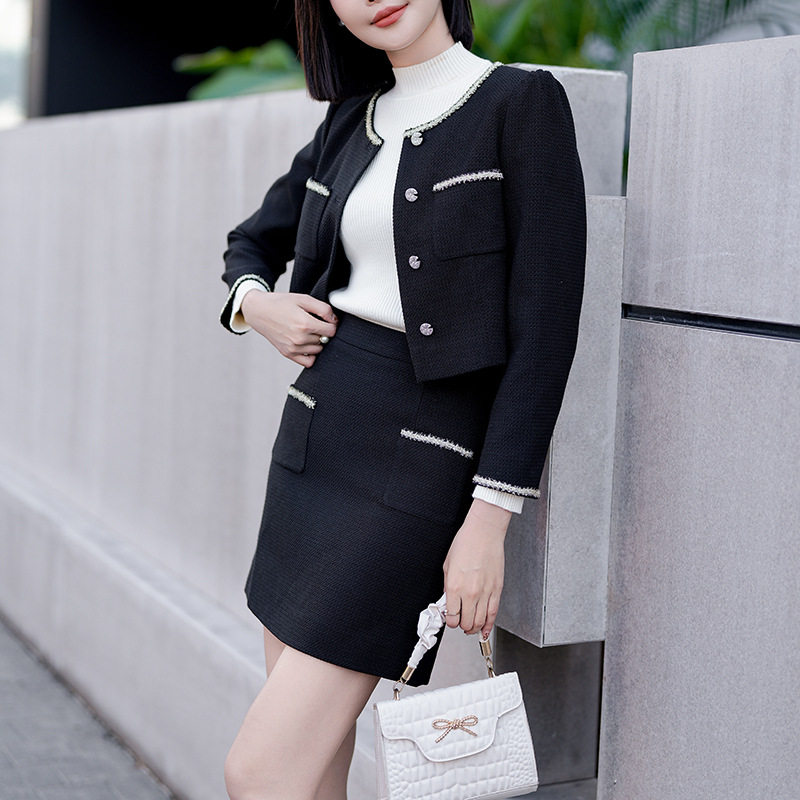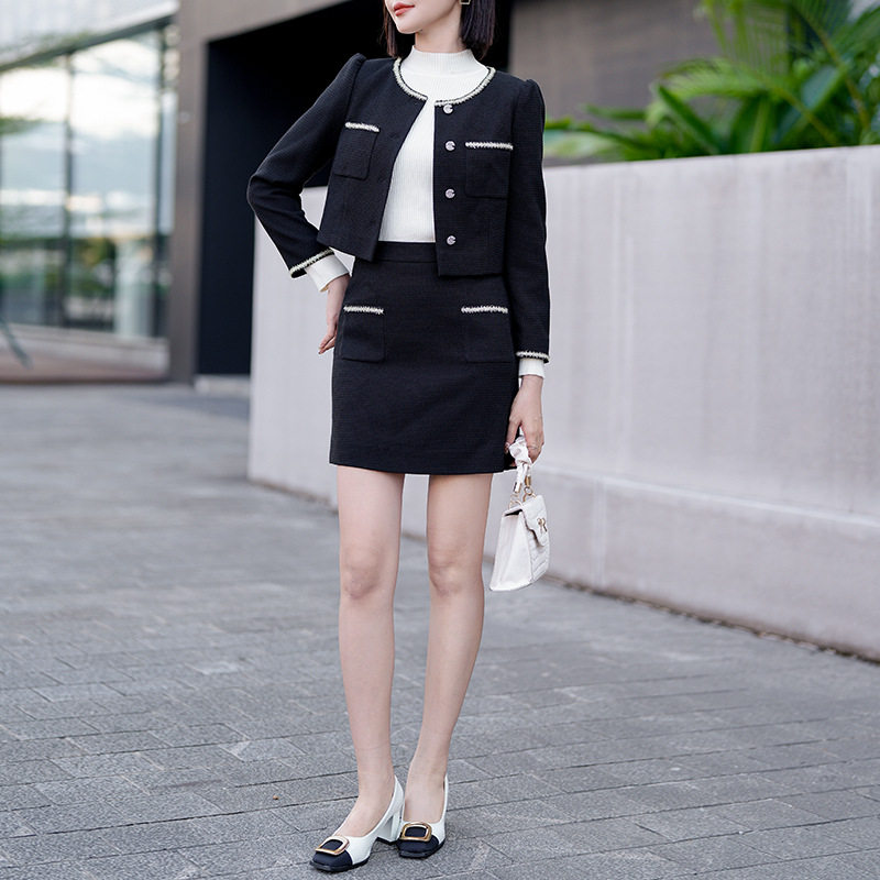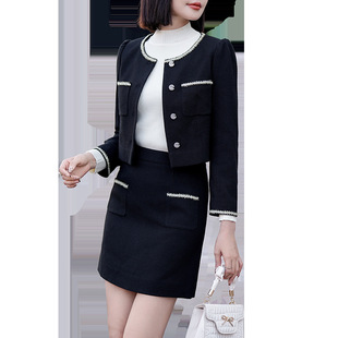 雅丽堡2024名媛秋冬重工钉珠小香外套半身裙两件套装 显瘦包臀套裙