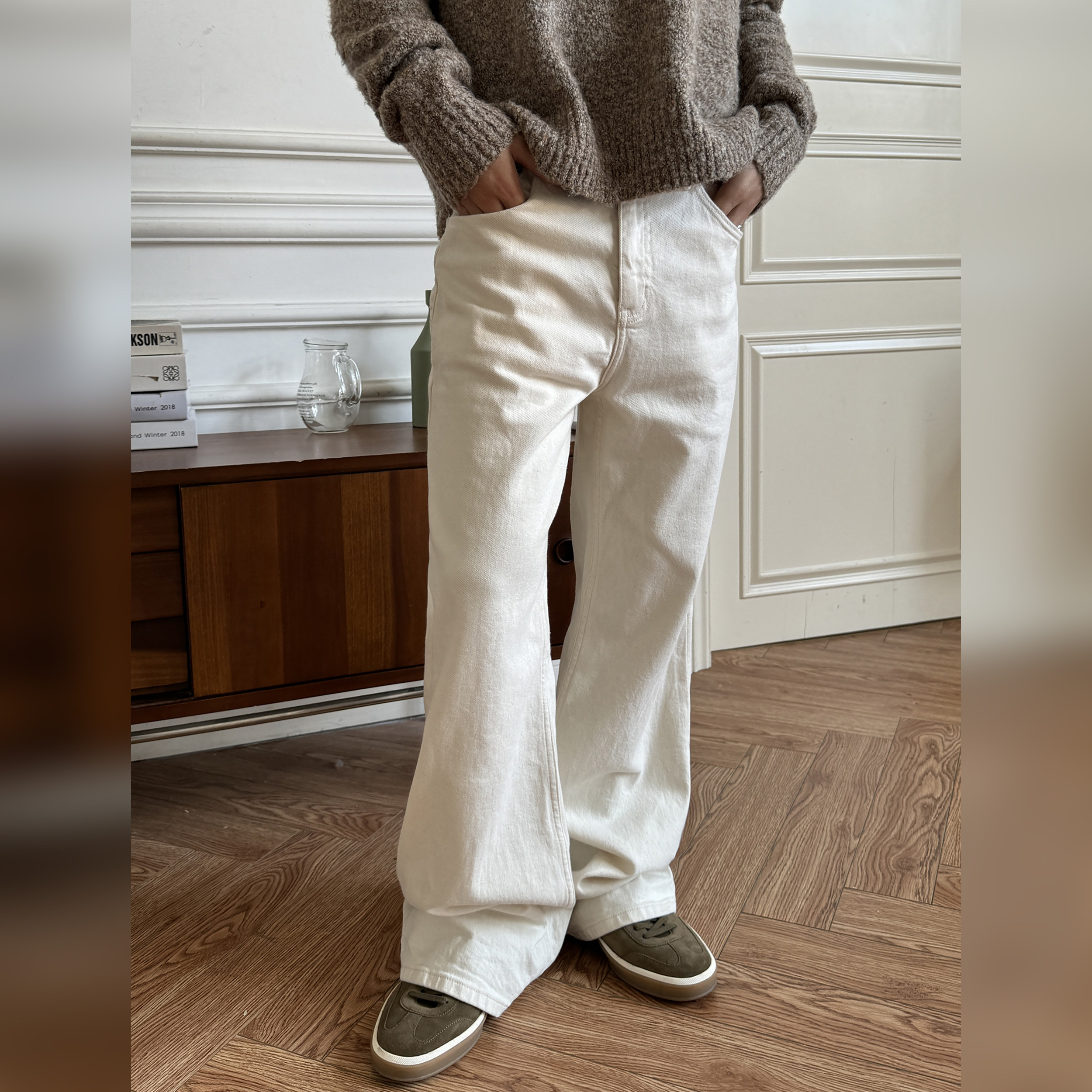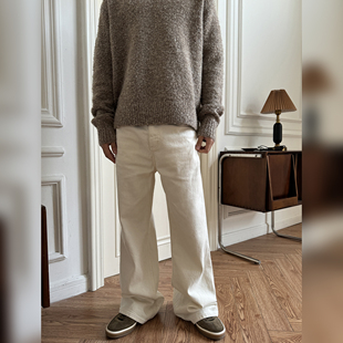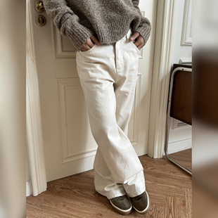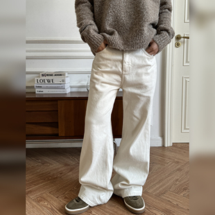 重制2021M宽松微喇米白色原胚复古牛仔长裤 徐正溪同款