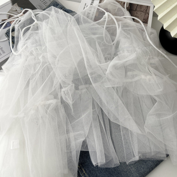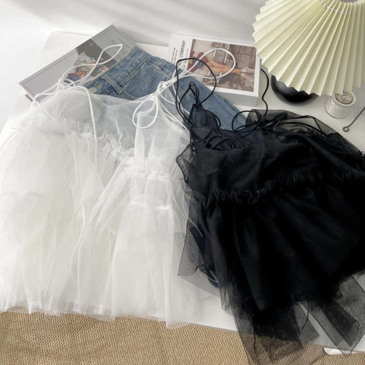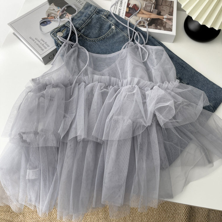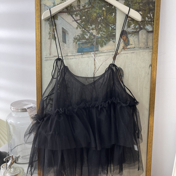 法式 蝴蝶结绑带层层网纱吊带背心女2026木耳边叠穿外塔上衣潮