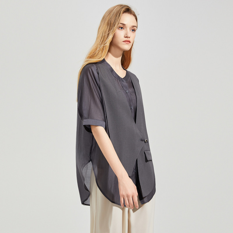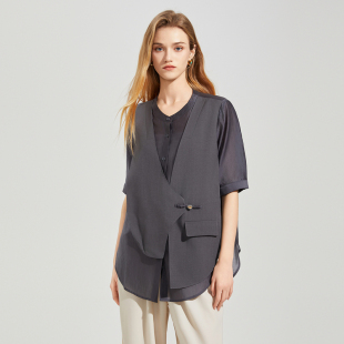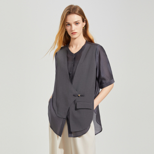 式 衬衫 短西服 外套女2025夏新款 她图假两件设计感小众宽松休闲西装