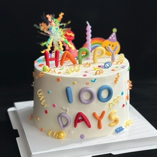 网红ins风满月百天生日蛋糕装 饰插件软胶彩色happy100day字母摆件
