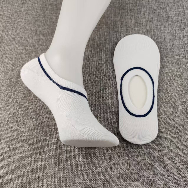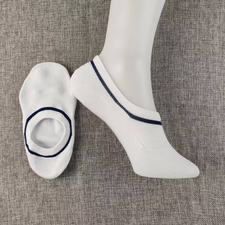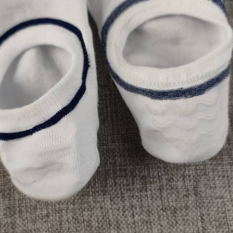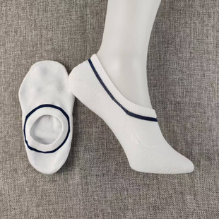 纯棉低帮白色条纹短袜夏季 不掉跟女船袜子吸汗浅口隐形袜硅胶防滑