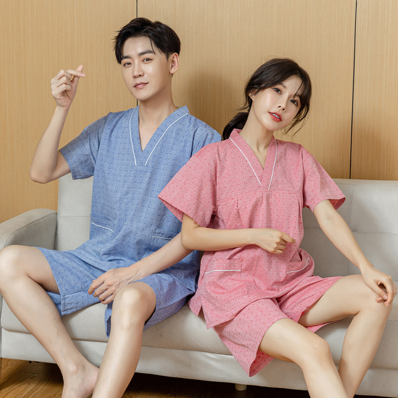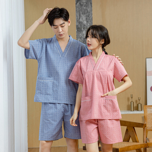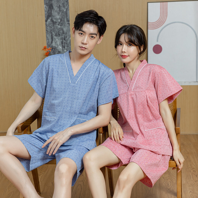 汤泉足疗养生服按摩桑拿浴服家居睡衣 男款 汗蒸服女纯棉情侣装 大码