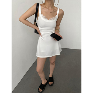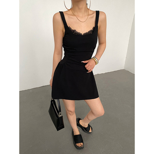 蓬蓬裙子 收腰显瘦短款 AcupStudio江右上 蕾丝边背心连衣裙女夏季