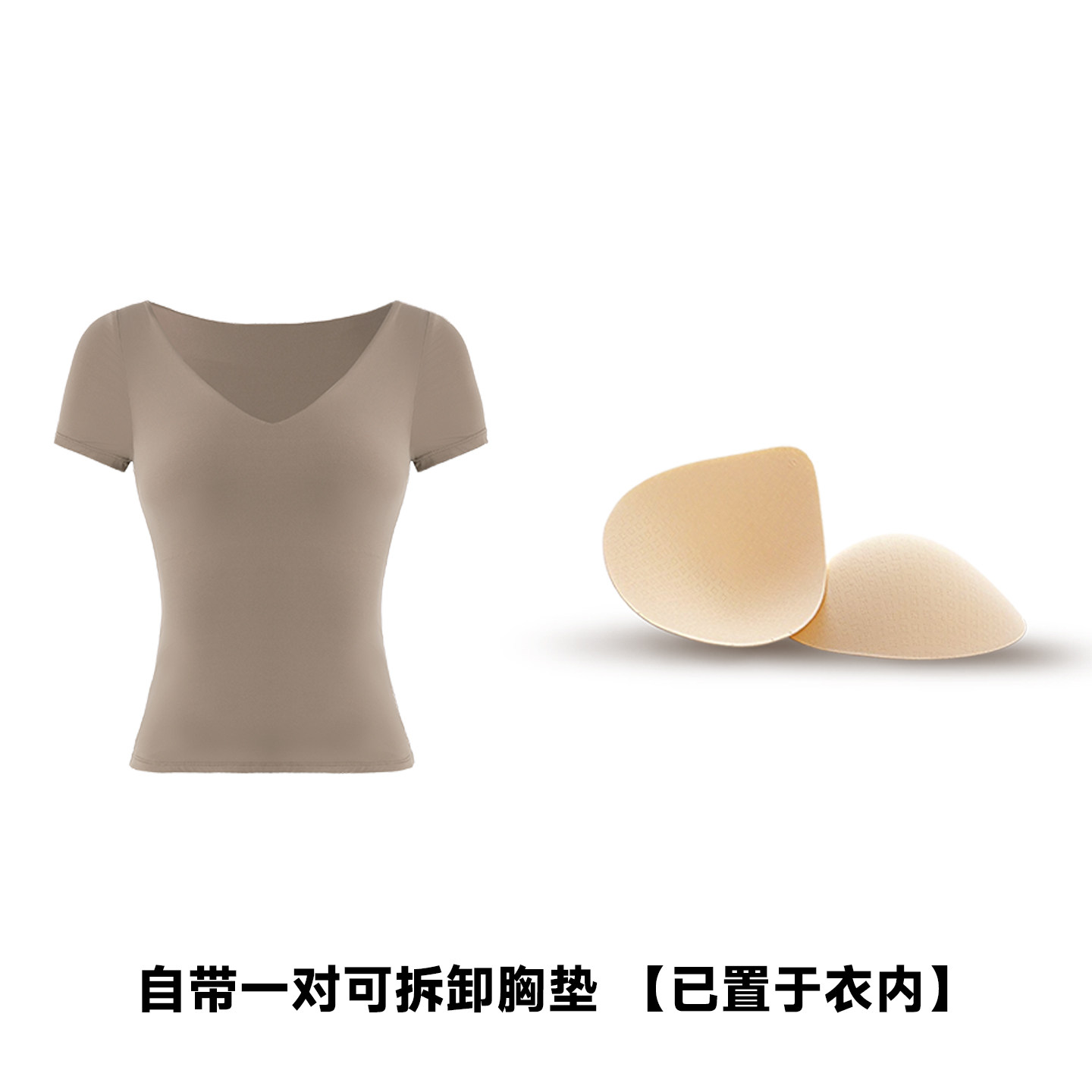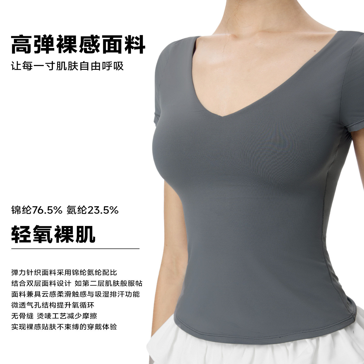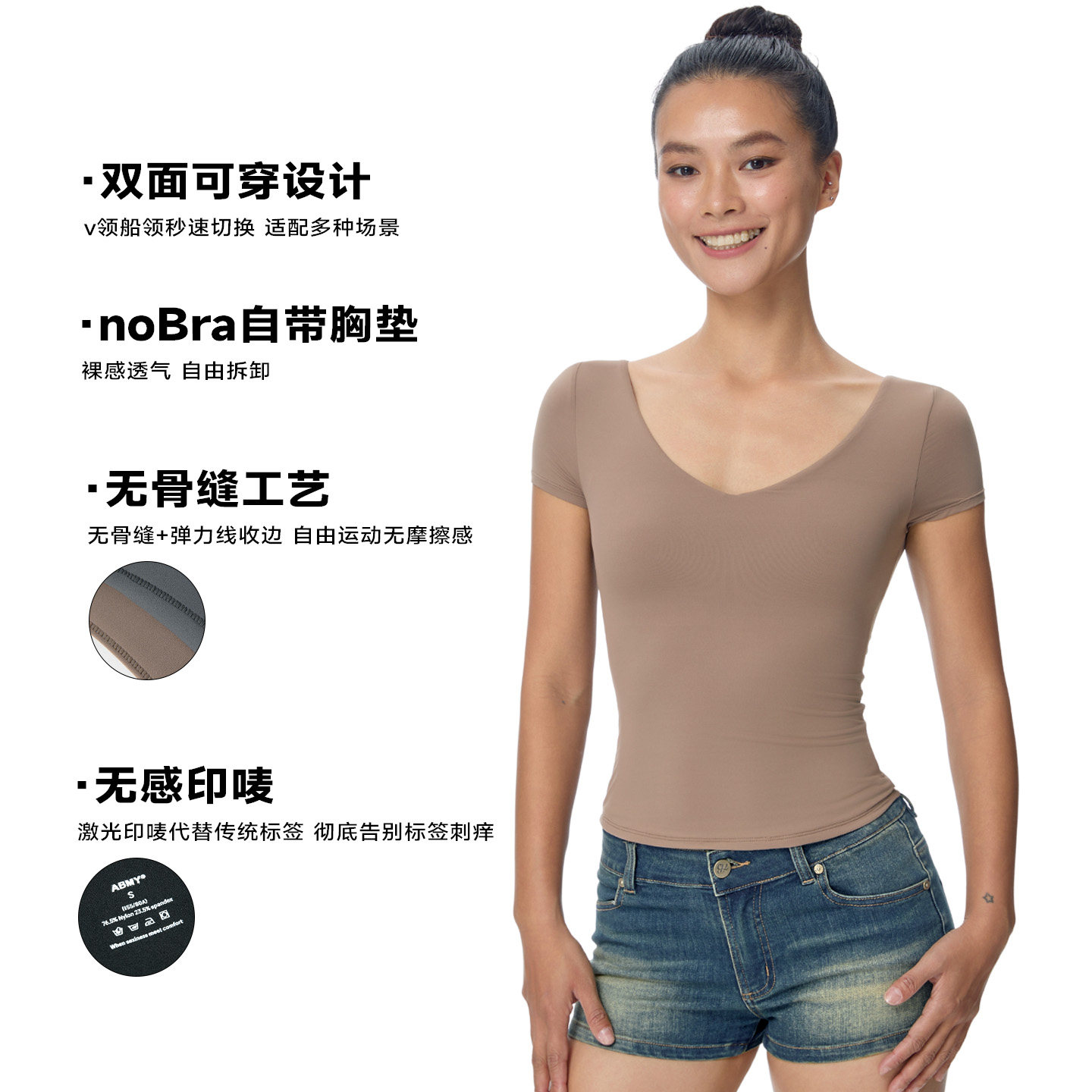 轻氧系列v领短袖 ABMY T恤女夏带胸垫多穿显瘦百搭上衣 noBra