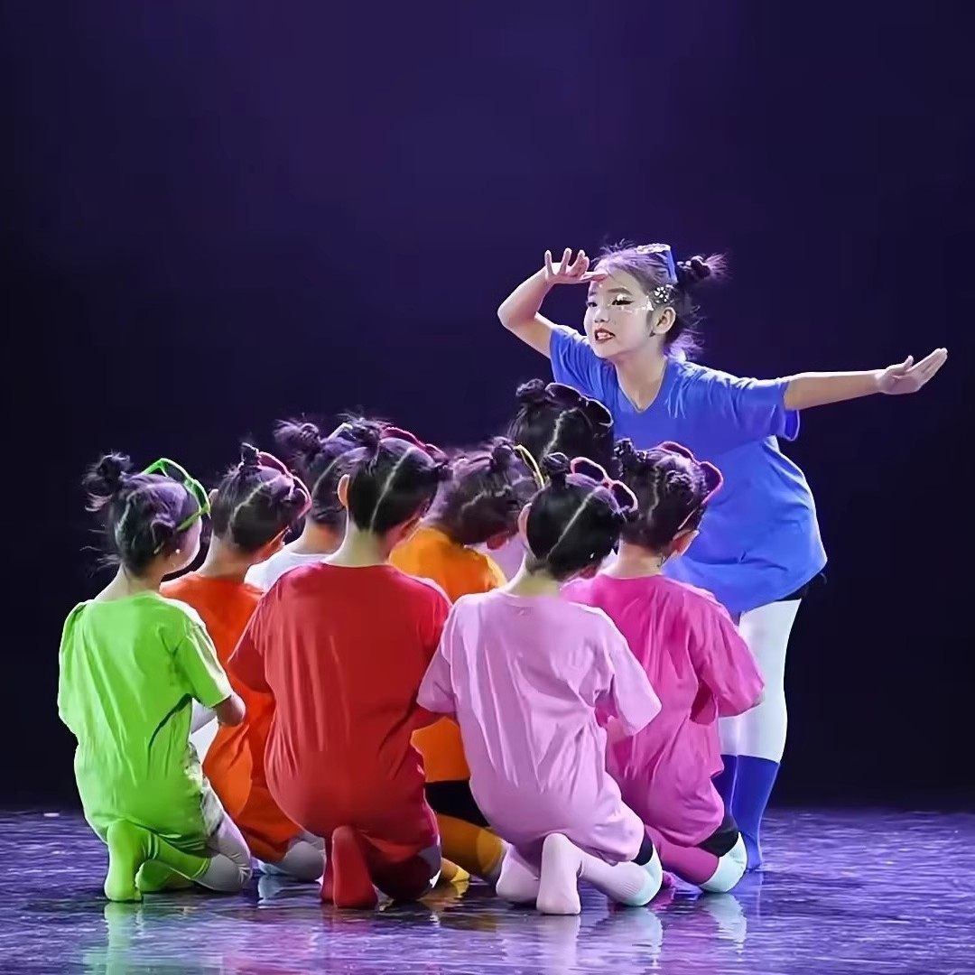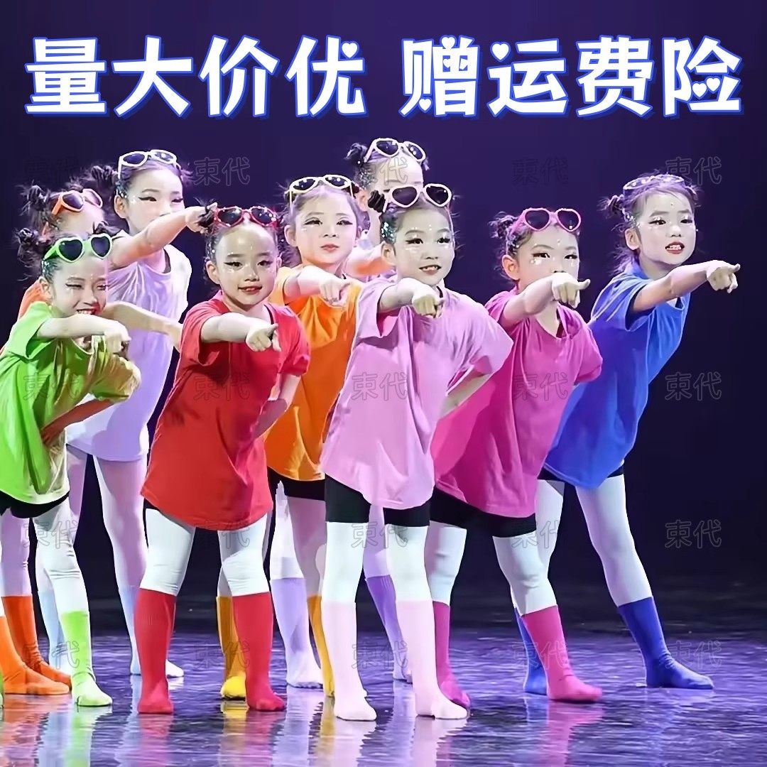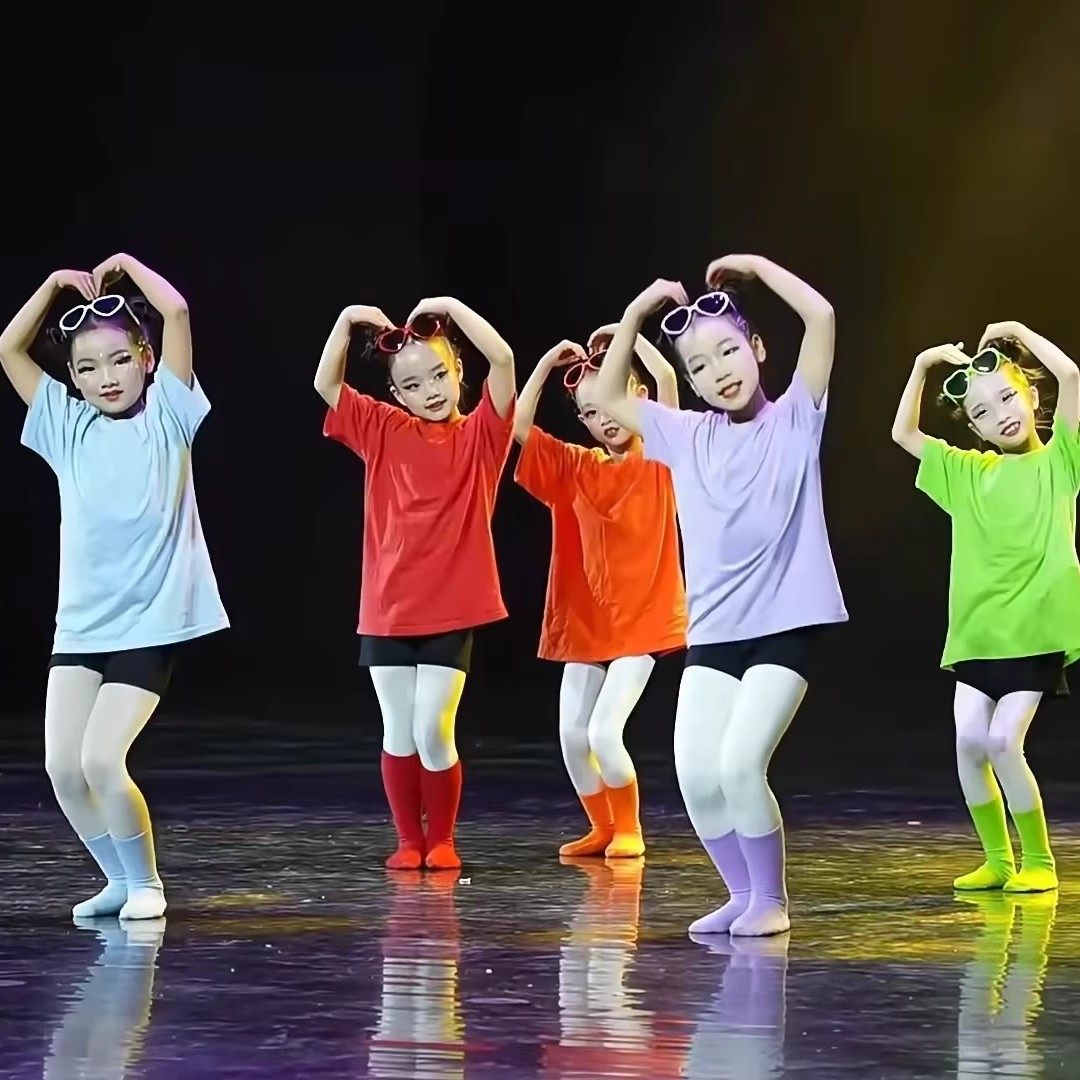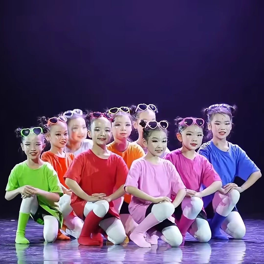 国庆儿童表演糖果彩色短袖 T恤舞蹈服偷偷看你一眼玩伴心恋演出服