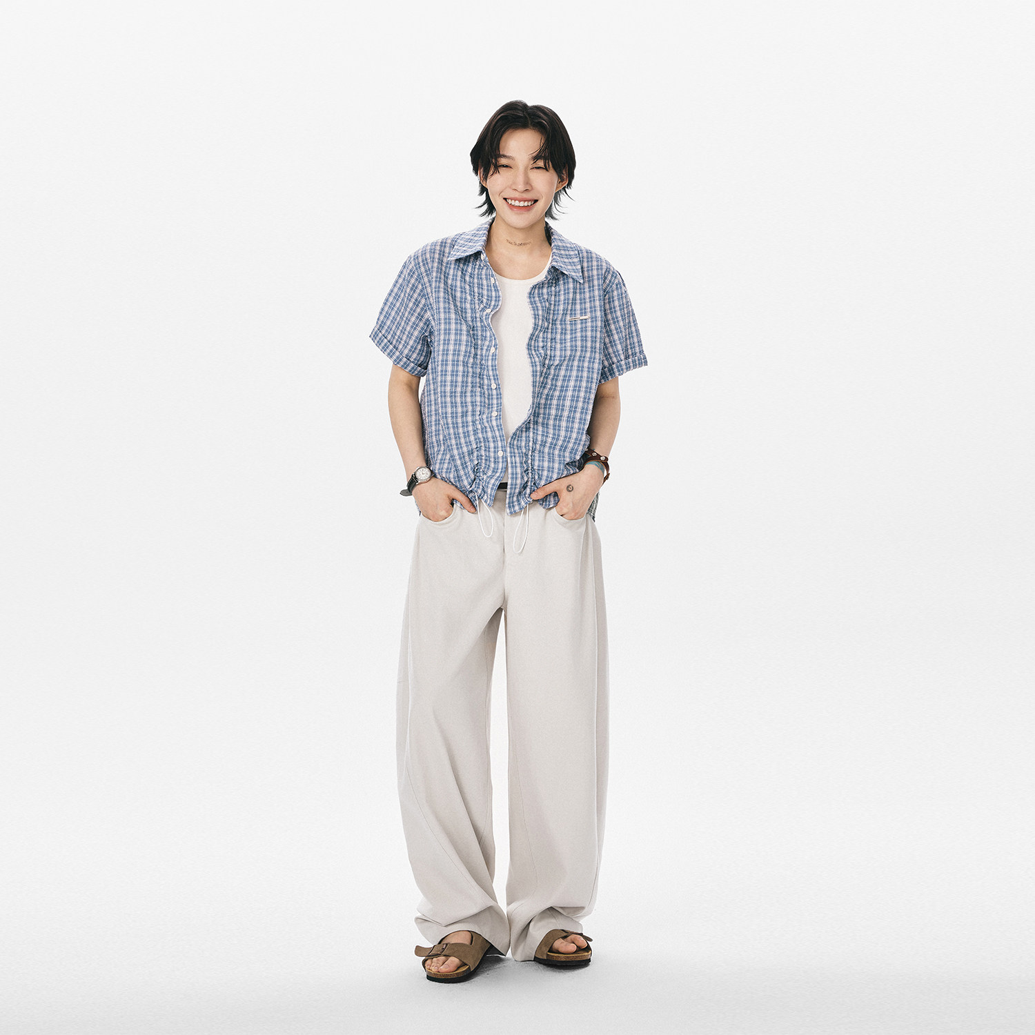 春长袖 衬衫 散养文化「幻褶」格子短袖 衬衣中性风 李斯丹妮同款