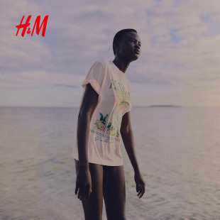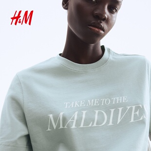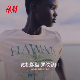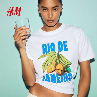 圆领短袖 HM女装 休闲时尚 印花宽松美式 上衣1293967 T恤春季