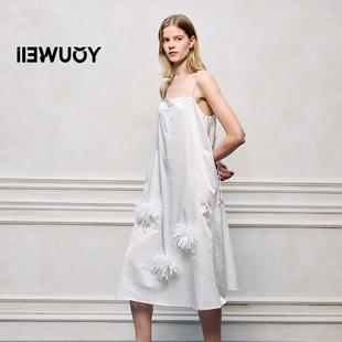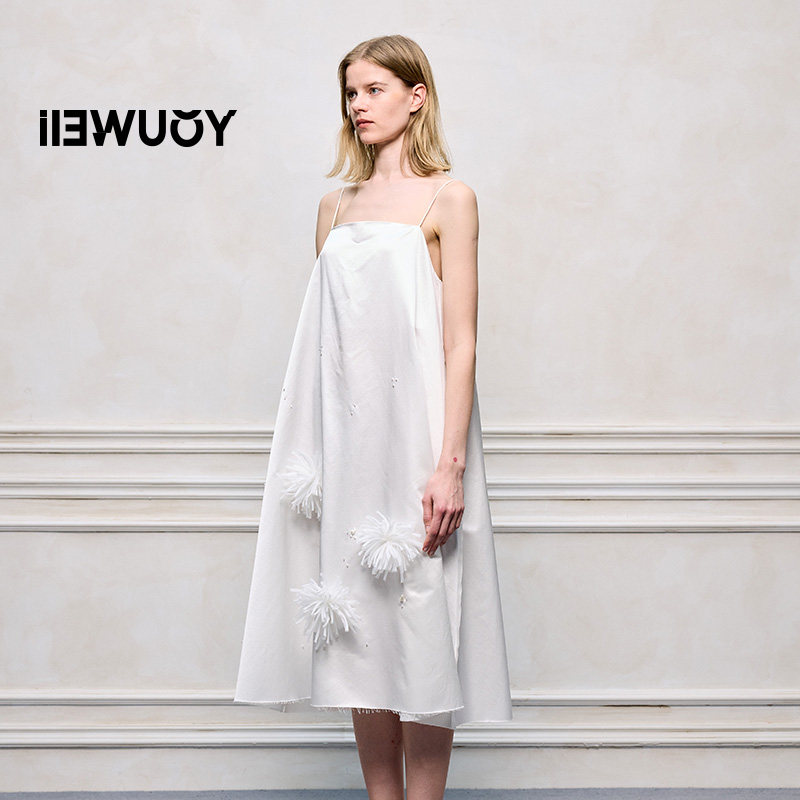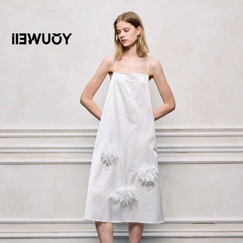YOUWEI有尾2025夏季 贝壳系列丝棉钉珠花连衣裙Y5725243 新品
