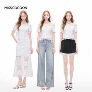 镂空蕾丝短袖 新款 两件套 女2025秋季 MISSCOCOON可可尼半身裙套装
