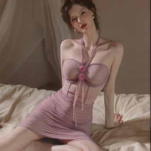 今夕何夕性感睡衣女高级感纯欲薄款 透视网纱小胸情调吊带睡裙qqny