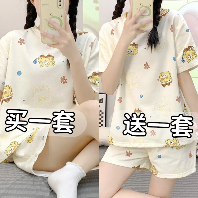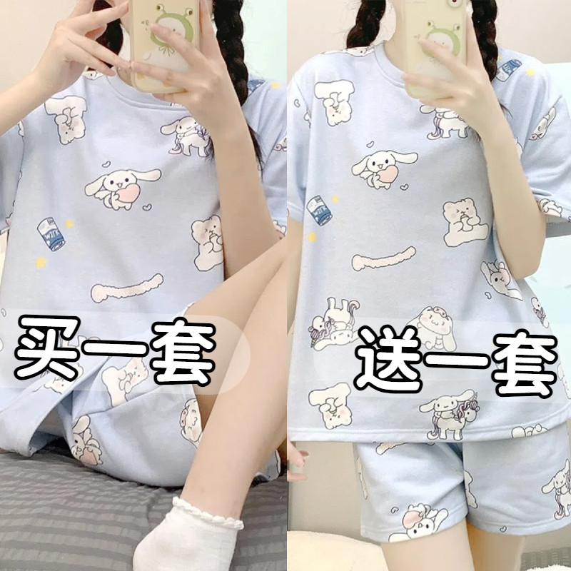 卡通可爱宽松大码 2025新款 短裤 学生短袖 宿舍家居服 纯棉睡衣女夏季