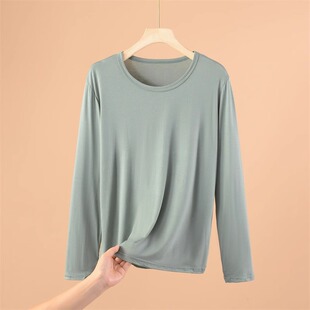 大码 春秋衣女士圆领内搭中老年妈妈装 薄上衣 T恤打底衫 莫代尔长袖