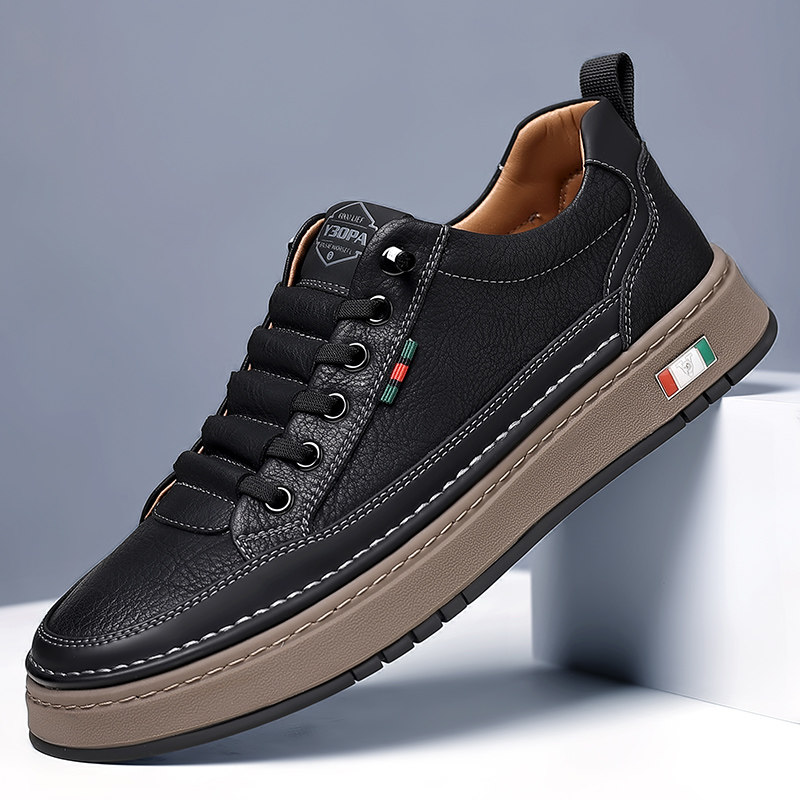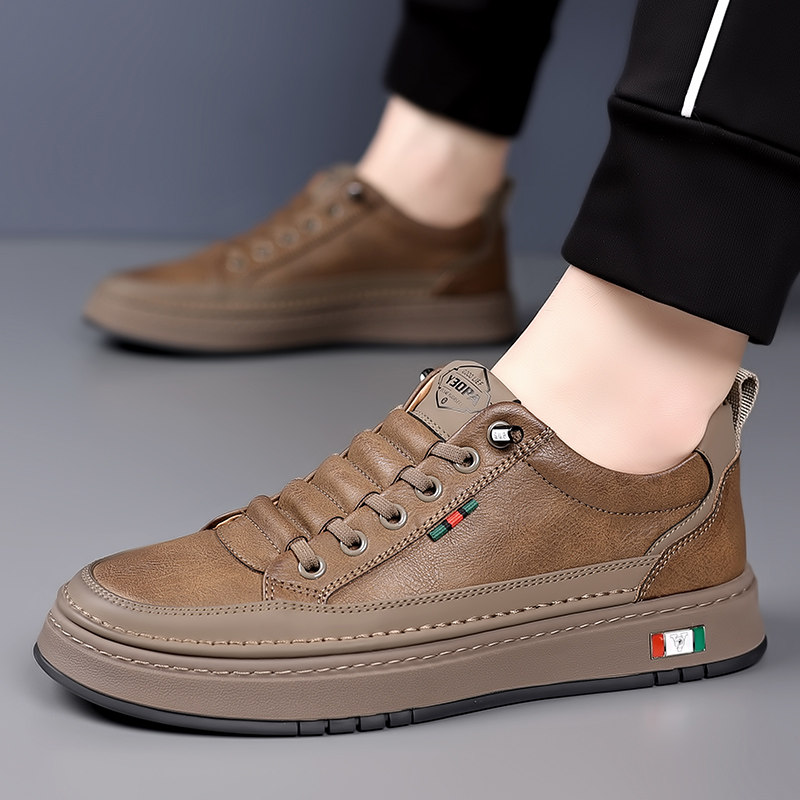耐磨潮鞋 百搭黑色鞋 子休闲防滑板鞋 时尚 男鞋 牛皮软底跑步鞋 爆款