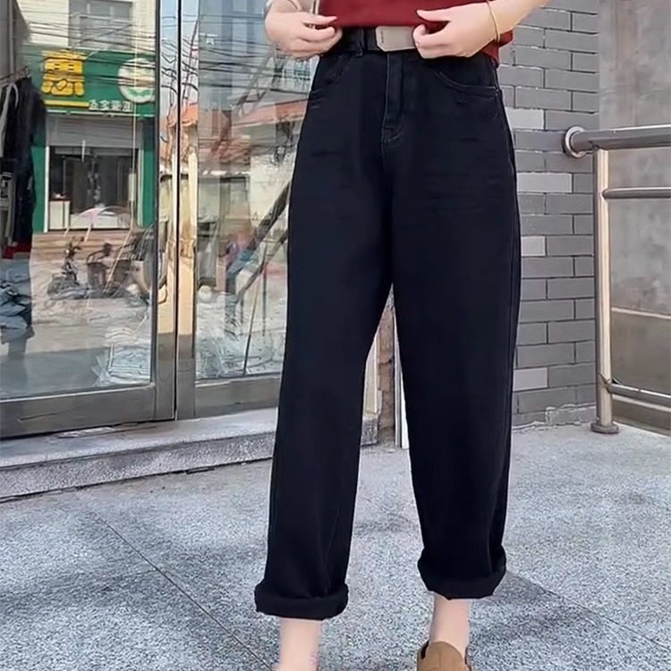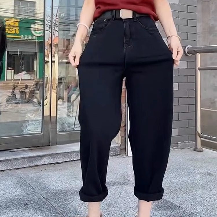 奶奶裤 2025新款 弹力加绒萝卜裤 大码 子 哈伦牛仔裤 显瘦老爹裤 女春季
