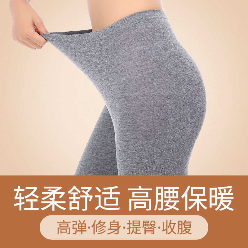菇娘家澳洲美丽诺羊毛灰色打底裤 袜 女冬外穿加厚保暖压力瘦腿连裤