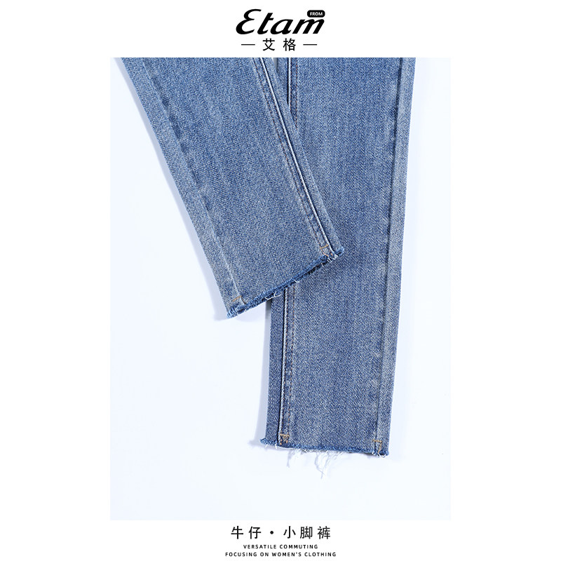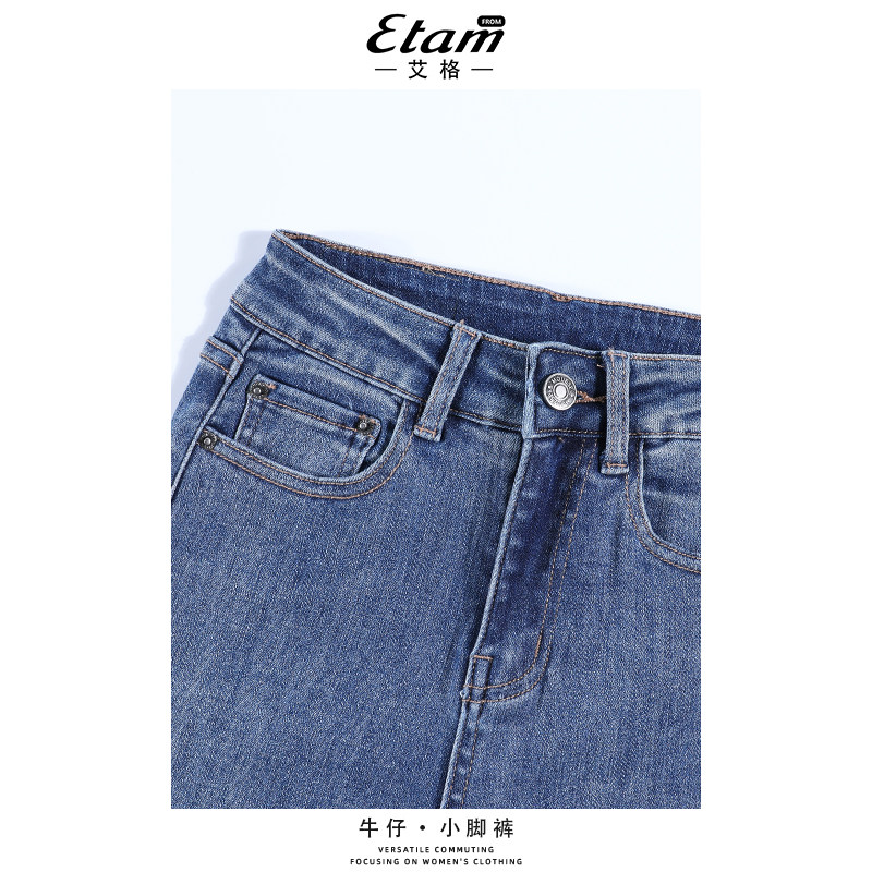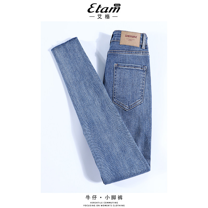 显瘦九分复古小脚裤 艾格蓝色牛仔铅笔裤 高腰修身 新款 女2026年春季
