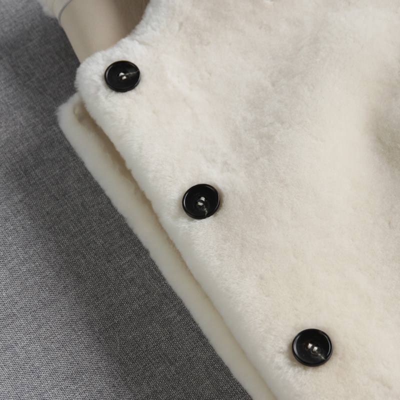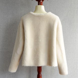 秋冬 女式 2025年澳洲美利奴羊毛外套短款 圆领皮毛一体皮草大衣时尚
